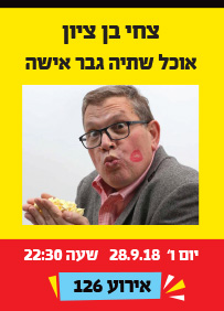 המופע המצליח "אוכל שתייה גבר אישה" של דר' צחי בן ציון, רופא מין,סקסולוג ופסיכיאטר.